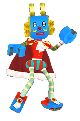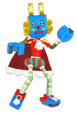 Louis-CONCENT III is another one of Konsento robots. He has two gold pins on his head and has blond curly hair and mustache. He wore a royal attire that has a red blouse with red and yellow shoulder pads with a white handkerchief on his neckline, red and blue pants with hip paddings and his mint and yellow leggings. He also wore a red cape on the back of his neck, white sleeves and a ribbon and a red heel on each foot.